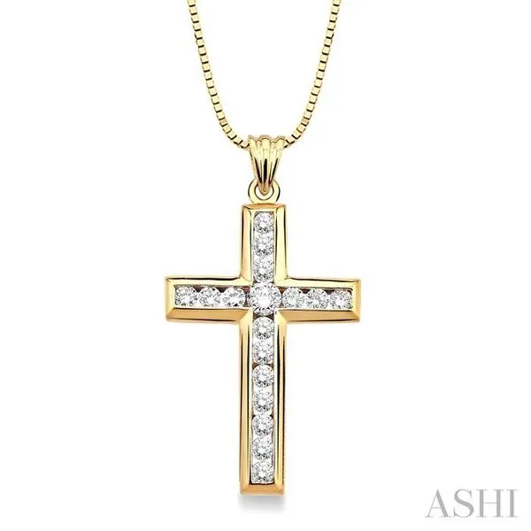 (319) 752-31961 Ctw Round Cut Diamond Cross Pendant in 14K Yellow Gold with Chain