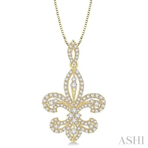 (319) 752-31961 Ctw Round Cut Diamond Fleur De Lis Diamond Pendant in 14K Yellow Gold with Chain