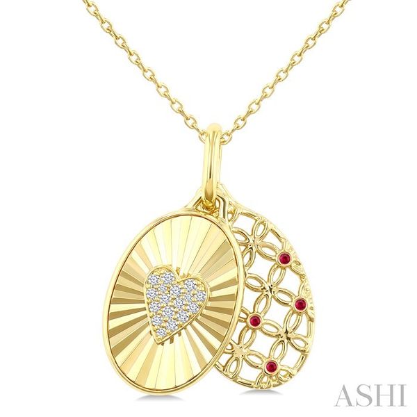 1 MM Round Cut Ruby and 1/10 Ctw Round Cut Diamond Fluted Heart Shaped Precious Pendant with Chain in 10K Yellow Gold Image 2 Becker's Jewelers Burlington, IA
