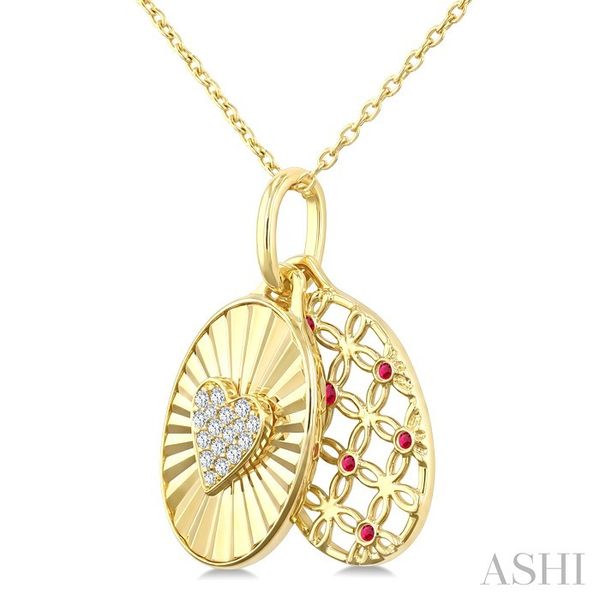 1 MM Round Cut Ruby and 1/10 Ctw Round Cut Diamond Fluted Heart Shaped Precious Pendant with Chain in 10K Yellow Gold Image 3 Becker's Jewelers Burlington, IA