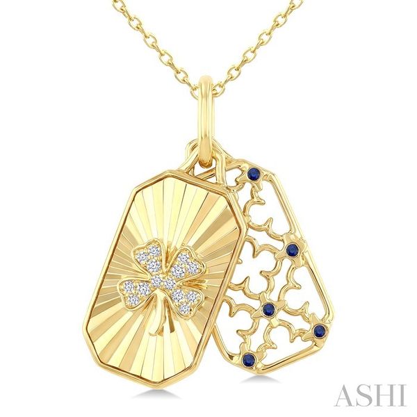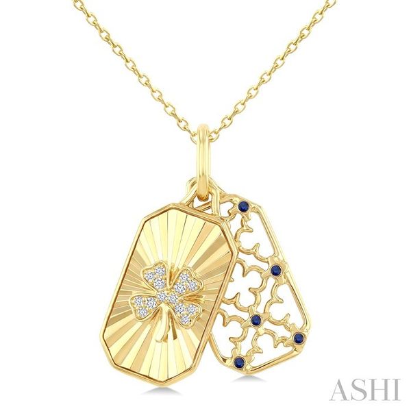 1 MM Round Sapphire and 1/20 Ctw Fluted Texture & Clover Round Cut Diamond Precious Pendant With Chain in 10K Yellow Gold Image 2 Becker's Jewelers Burlington, IA