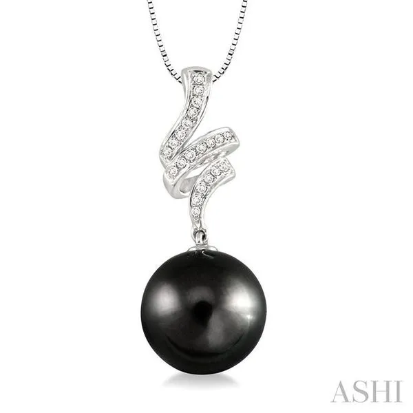 (319) 752-319610 MM Black Cultured Pearl and 1/8 Ctw Round Cut Diamond Pendant in 14K White Gold with Chain