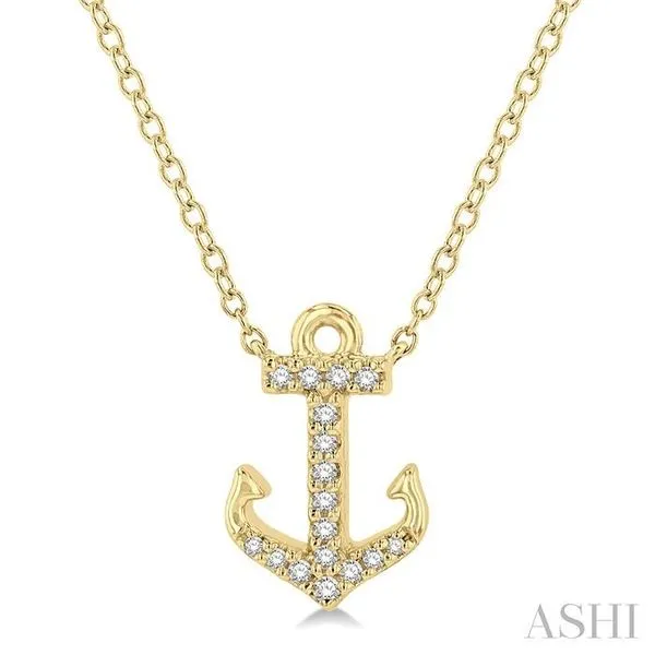 (319) 752-31961/10 Ctw Anchor Round Cut Diamond Petite Fashion Pendant With Chain in 14K Yellow Gold