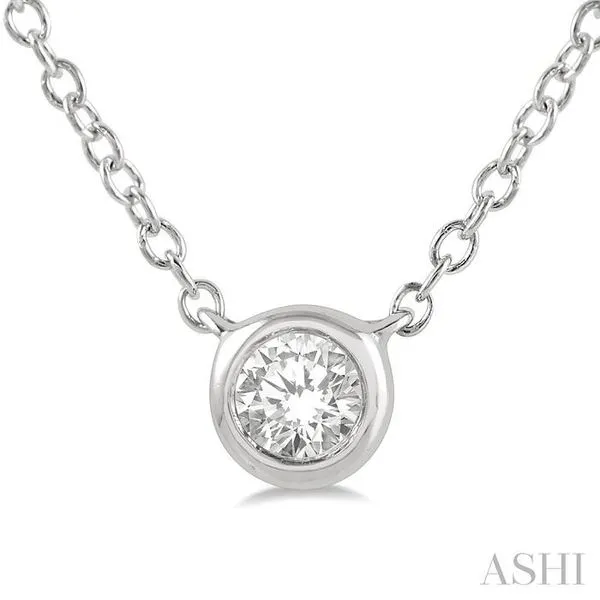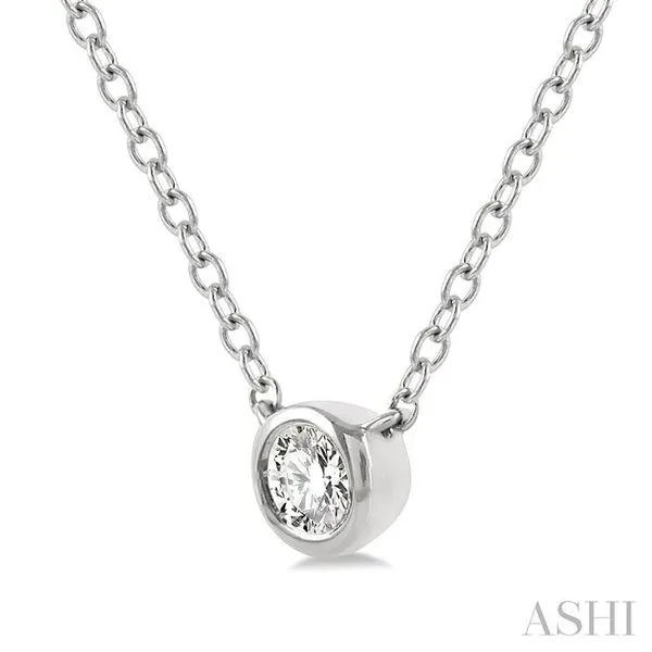 (319) 752-31961/10 Ctw Bezel Round Cut Diamond Petite Fashion Pendant With Chain in 10K White Gold