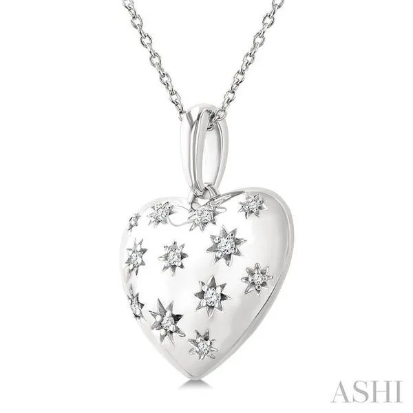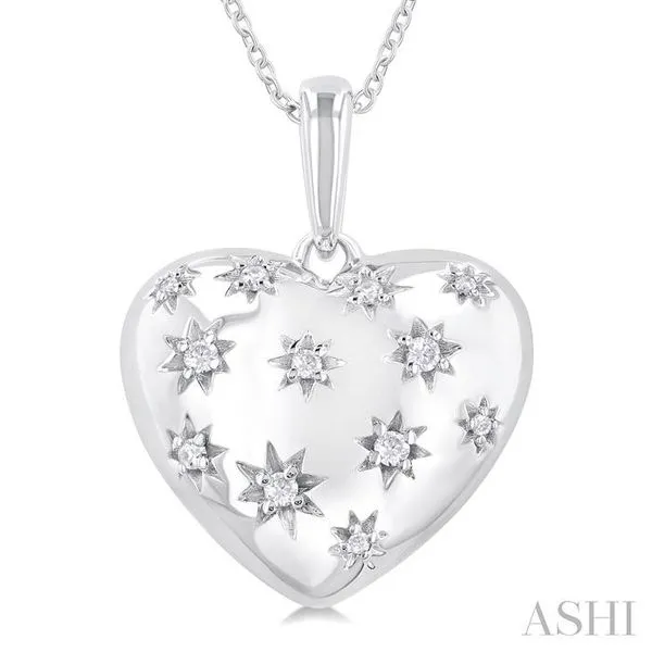 (319) 752-31961/10 Ctw Bold Star Engraved Puffed Heart Round Cut Diamond Pendant With Chain in Sterling Silver