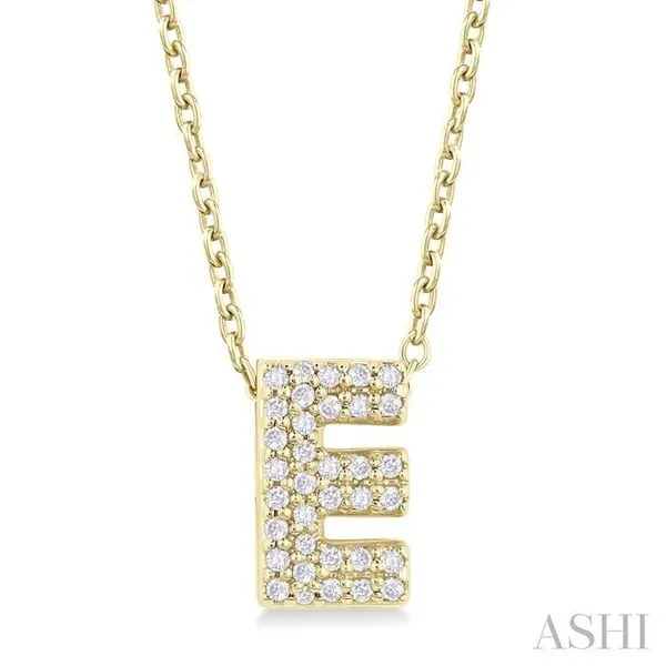 (319) 752-31961/10 Ctw Bubble Accent Initial 'E' Round Cut Diamond Fashion Pendant With Chain in 10K Yellow Gold