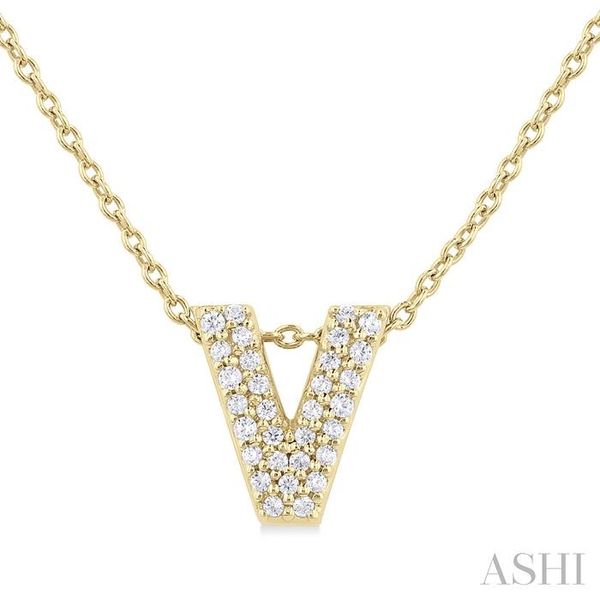 1/10 Ctw Bubble Accent Initial 'V' Round Cut Diamond Fashion Pendant With Chain in 10K Yellow Gold Image 3 Becker's Jewelers Burlington, IA