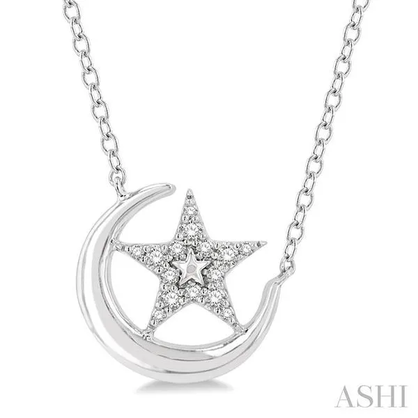 (319) 752-31961/10 Ctw Crescent Moon and Star Round Cut Petite Diamond Fashion Pendant With Chain in 10K White Gold