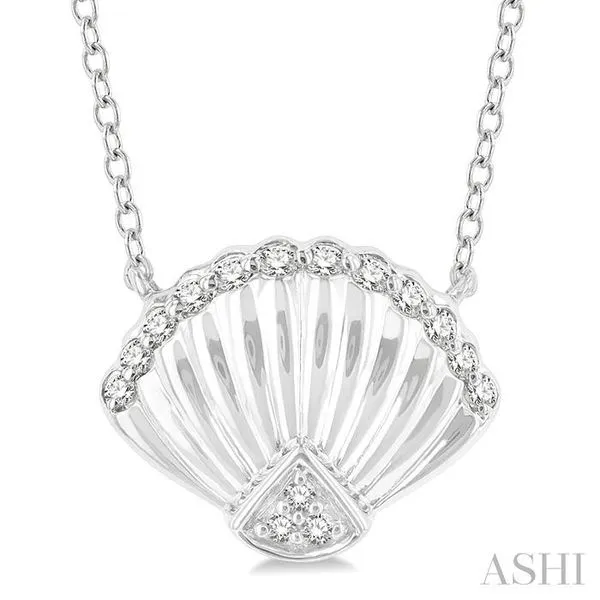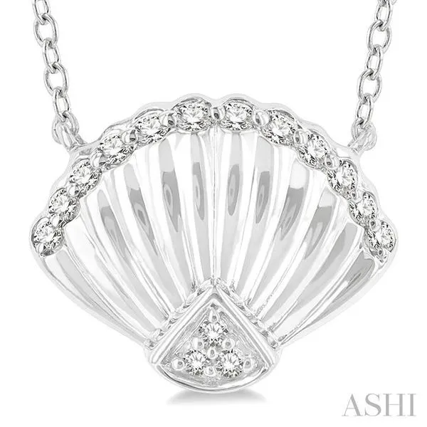 (319) 752-31961/10 Ctw Nautical Seashell Petite Round Cut Diamond Fashion Pendant With Chain in 10K White Gold