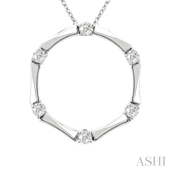 (319) 752-31961/10 Ctw Petite Bamboo Shoot Inspired Round Cut Diamond Fashion Pendant With Chain in 10K White Gold
