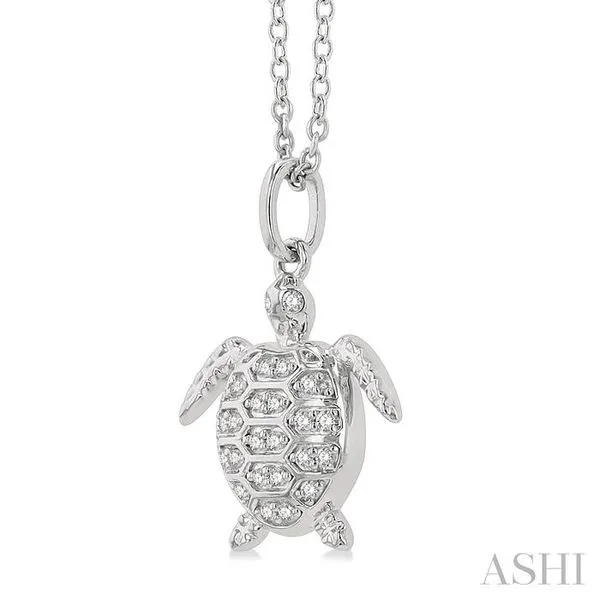 (319) 752-31961/10 Ctw Petite Sea Life Turtle Round Cut Diamond Fashion Pendant With Chain in 10K White Gold