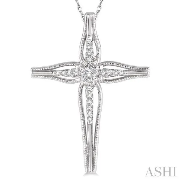 (319) 752-31961/10 Ctw Round Cut Diamond Cross Charm Fashion Pendant With Chain in 10K White Gold