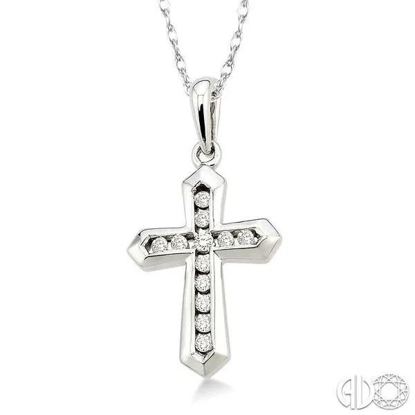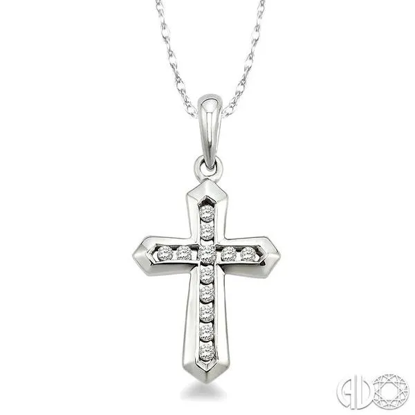 1/10 Ctw Round Cut Diamond Cross Pendant in 10K White Gold with Chain Image 2 Becker's Jewelers Burlington, IA
