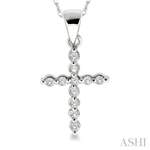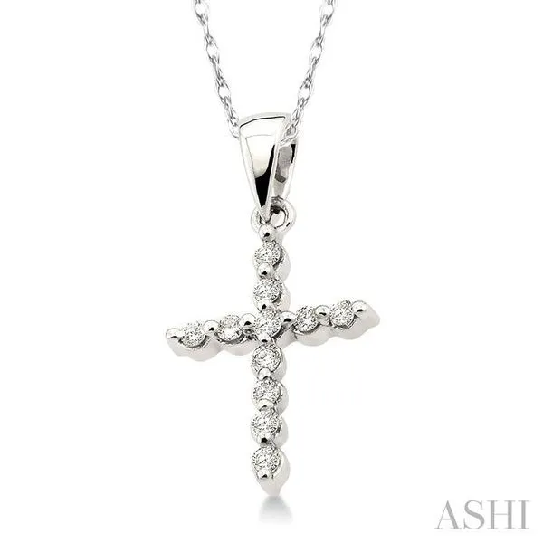 (319) 752-31961/10 Ctw Round Cut Diamond Cross Petite Pendant in 14K White Gold with Chain