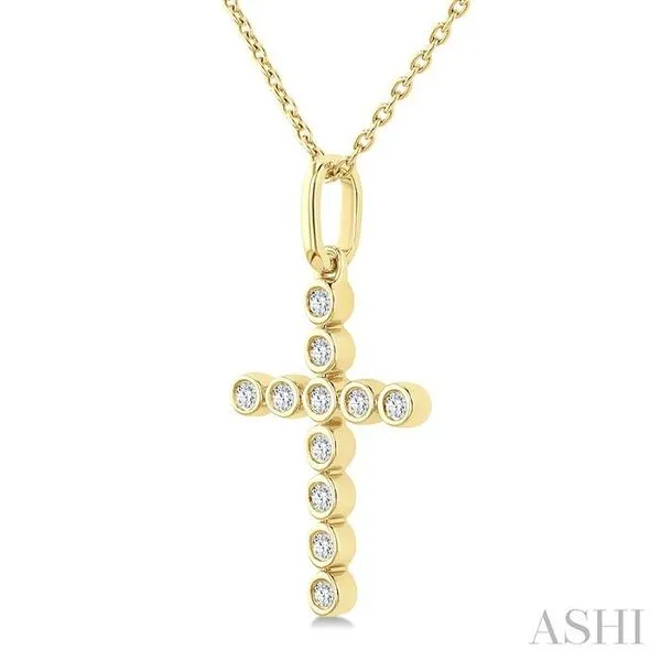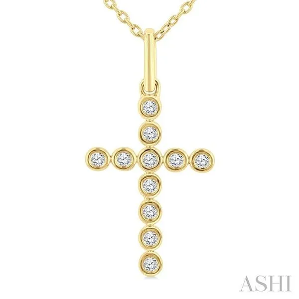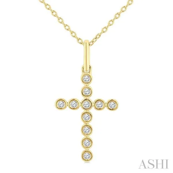 (319) 752-31961/10 Ctw Single Cut Diamond Bezel Set Cross Petite Pendant With Chain in 10K Yellow Gold