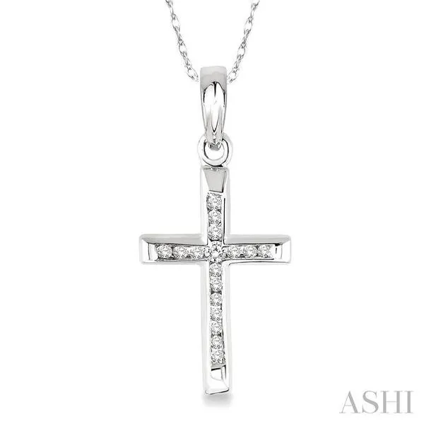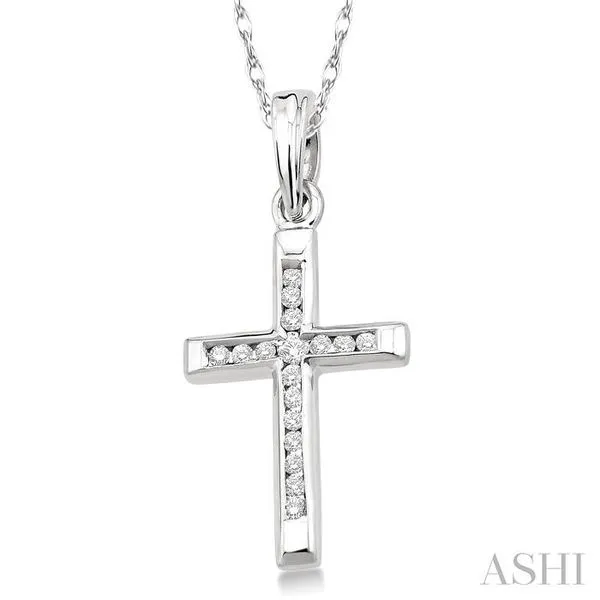 (319) 752-31961/10 Ctw Single Cut Diamond Cross Pendant in 10K White Gold with Chain