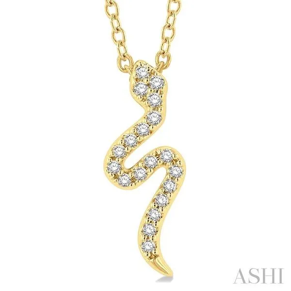(319) 752-31961/10 Ctw Snake Petite Round Cut Diamond Fashion Pendant With Chain in 10K Yellow Gold