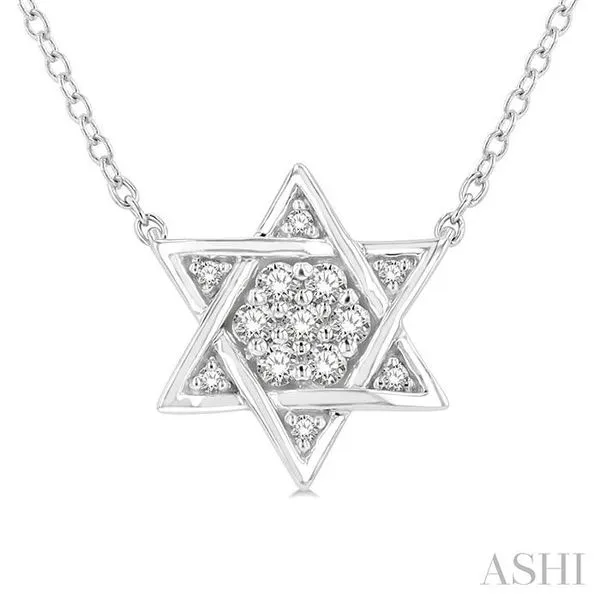 (319) 752-31961/10 Ctw Star of David Petite Round Cut Diamond Fashion Pendant With Chain in 10K White Gold