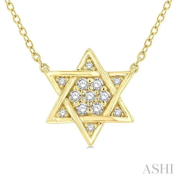 (319) 752-31961/10 Ctw Star of David Petite Round Cut Diamond Fashion Pendant With Chain in 10K Yellow Gold