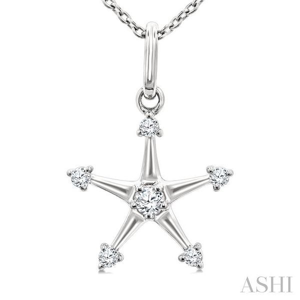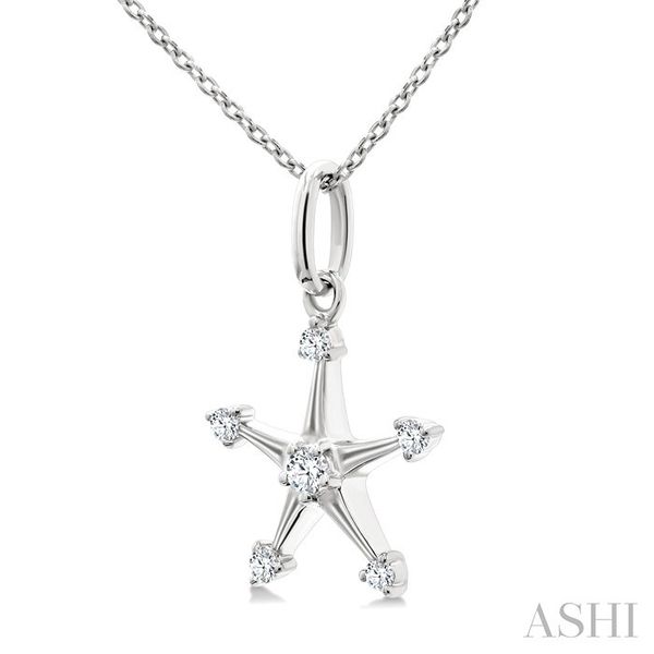 1/10 Ctw Star Round Cut Diamond Petite Fashion Pendant With Chain in 10K White Gold Image 2 Becker's Jewelers Burlington, IA