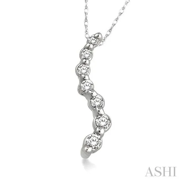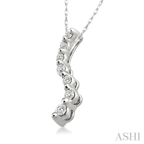 (319) 752-31961/10 Ctw Swirl Journey Diamond Pendant in 14K White Gold with Chain
