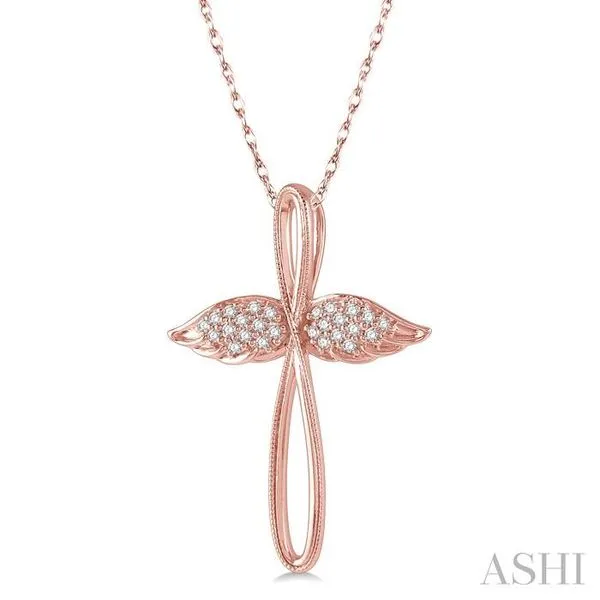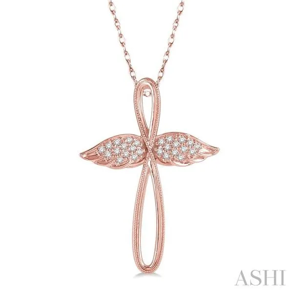 (319) 752-31961/10 Ctw Twisted Cross Angel Wings Round Cut Diamond Pendant With Chain in 10K Rose Gold
