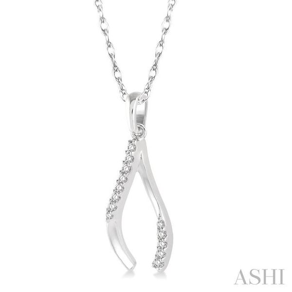 1/10 Ctw Wishbone Charm Round Cut Diamond Pendant With Link Chain in 10K White Gold Image 4 Becker's Jewelers Burlington, IA