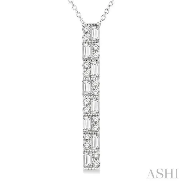 (319) 752-31961/2 Ctw Basket Weave Baguette and Round Cut Diamond Pendant With Chain in 14K White Gold
