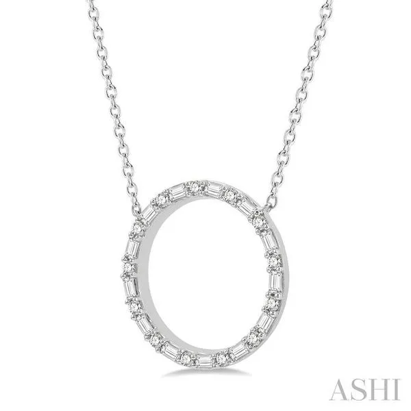 (319) 752-31961/2 Ctw Circle Baguette and Round Cut Diamond Pendant With Chain in 14K White Gold