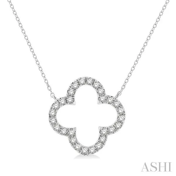 (319) 752-31961/2 Ctw Clover Round Cut Diamond Pendant With Chain in 14K White Gold
