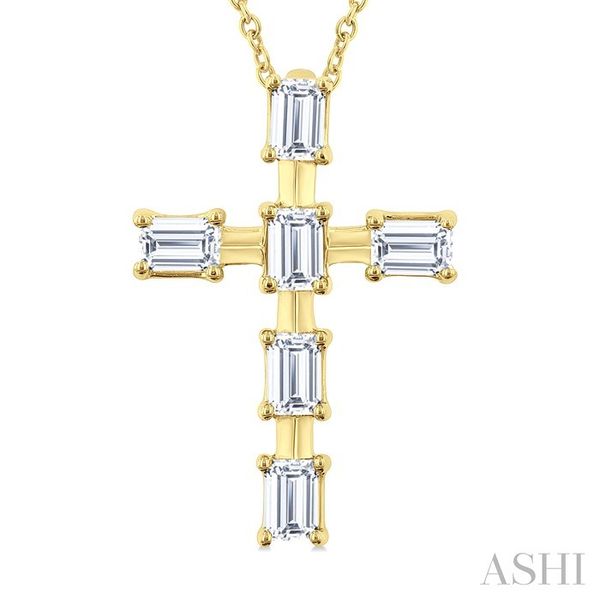 1/2 Ctw Cross Emerald Cut Diamond Fashion Pendant With Chain in 14K Yellow Gold Image 2 Becker's Jewelers Burlington, IA
