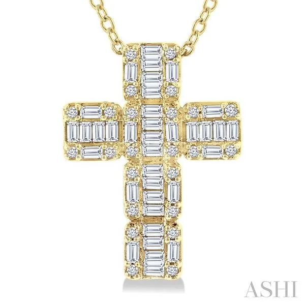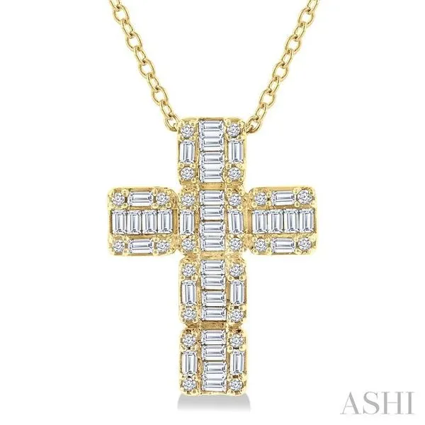 (319) 752-31961/2 Ctw Fusion Baguette and Round Cut Diamond Cross Fashion Pendant With Chain in 14K Yellow Gold
