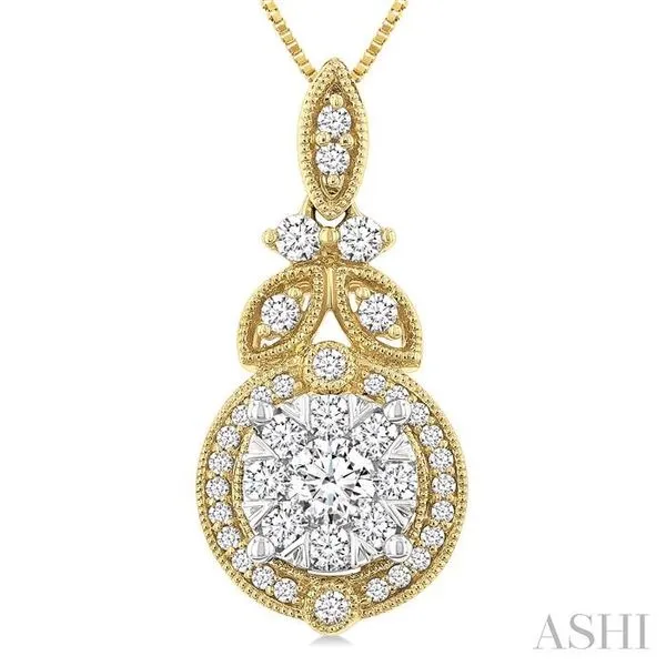 (319) 752-31961/2 Ctw Lovebright Circular Shape Round Cut Diamond Pendant With Chain in 14K Yellow and White Gold