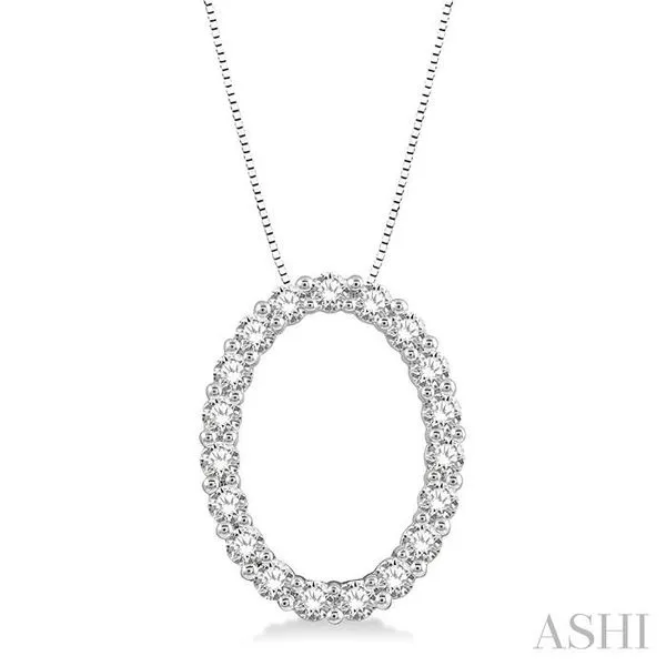 (319) 752-31961/2 Ctw Oval Shape Window Round Cut Diamond Pendant With Chain in 14K White Gold