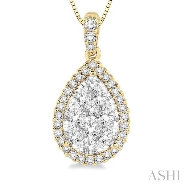 (319) 752-31961/2 Ctw Pear Shape Diamond Lovebright Pendant in 14K Yellow and White Gold with Chain