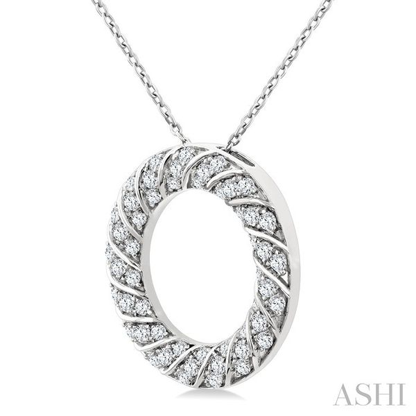 1/2 Ctw Ribbed Swirl Circle Round Cut Diamond Fashion Pendant With Chain in 14K White Gold Image 2 Becker's Jewelers Burlington, IA