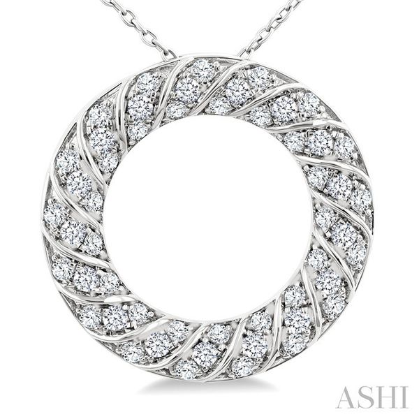 1/2 Ctw Ribbed Swirl Circle Round Cut Diamond Fashion Pendant With Chain in 14K White Gold Image 3 Becker's Jewelers Burlington, IA