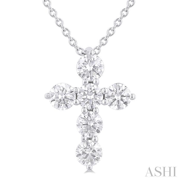 (319) 752-31961/2 Ctw Round Cut Diamond Christian Cross 6-Stone Fashion Pendant With Chain in 14K White Gold