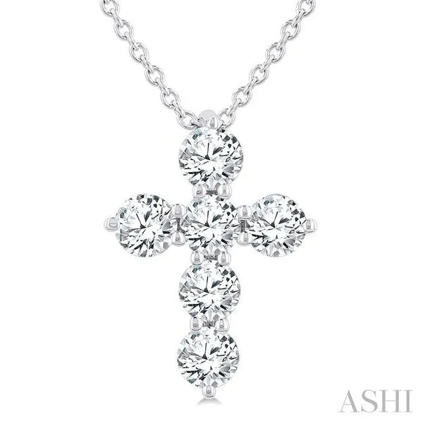 1/2 Ctw Round Cut Diamond Christian Cross 6-Stone Fashion Pendant With Chain in 14K White Gold Image 2 Becker's Jewelers Burlington, IA