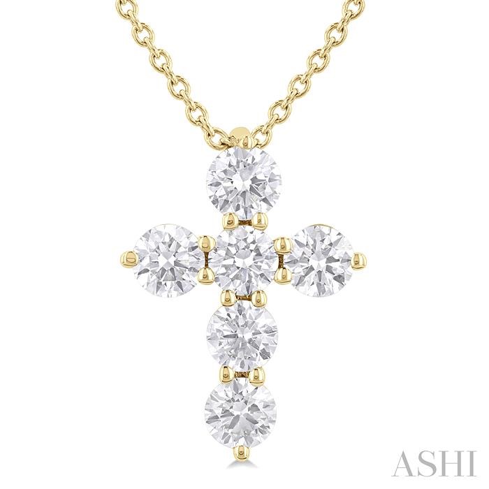 3. 1/2 Ctw Round Cut Diamond Christian Cross 6-Stone Fashion Pendant With Chain in 14K Yellow Gold