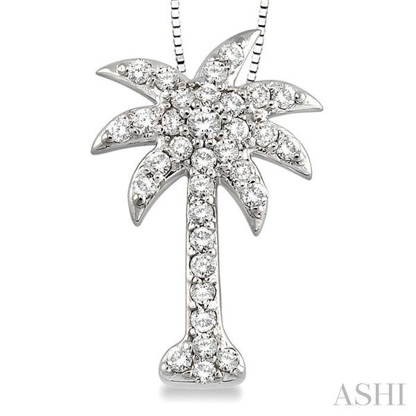1/2 Ctw Round Cut Diamond Palm Tree Pendant in 14K White Gold with Chain Image 2 Becker's Jewelers Burlington, IA