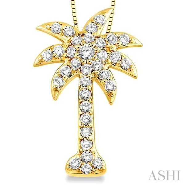 1/2 Ctw Round Cut Diamond Palm Tree Pendant in 14K Yellow Gold with Chain Image 2 Becker's Jewelers Burlington, IA