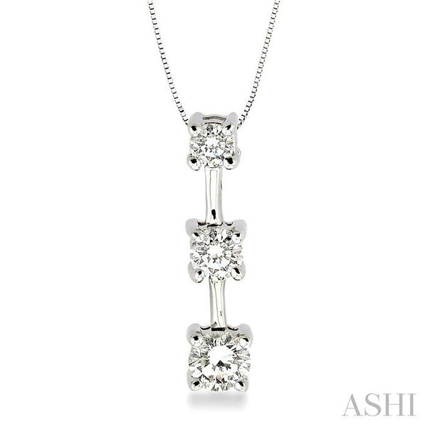 1/2 Ctw Three Stone Round Cut Diamond Pendant in 14K White Gold with Chain Image 4 Becker's Jewelers Burlington, IA