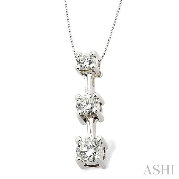 1/2 Ctw Three Stone Round Cut Diamond Pendant in 14K White Gold with Chain Image 2 Becker's Jewelers Burlington, IA
