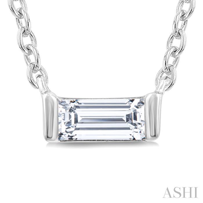 (319) 752-31961/20 Ctw Baguette Diamond Petite Fashion Pendant With Chain in 10K White Gold