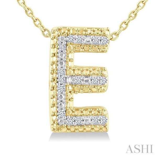 1/20 Ctw Bubble Accent Initial 'E' Round Cut Diamond Fashion Pendant With Chain in Yellow Gold Vermeil Image 2 Becker's Jewelers Burlington, IA