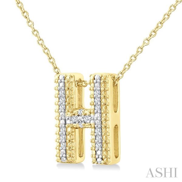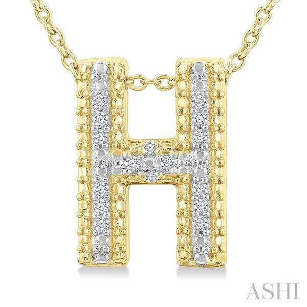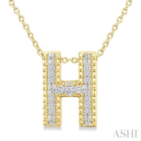1/20 Ctw Bubble Accent Initial 'H' Round Cut Diamond Fashion Pendant With Chain in Yellow Gold Vermeil Image 2 Becker's Jewelers Burlington, IA