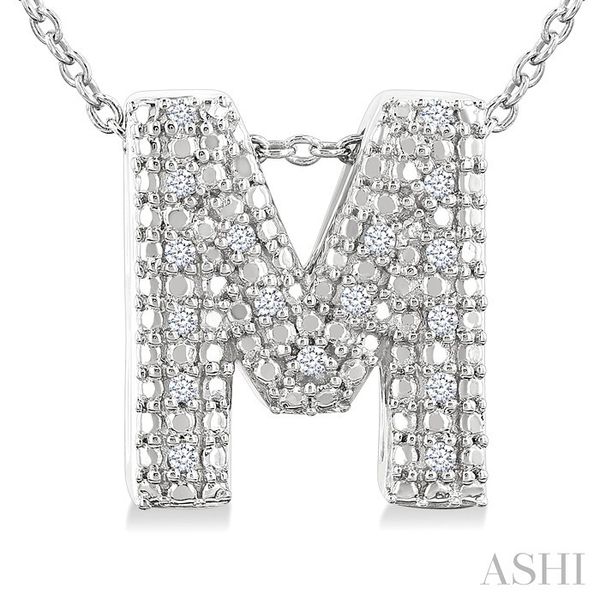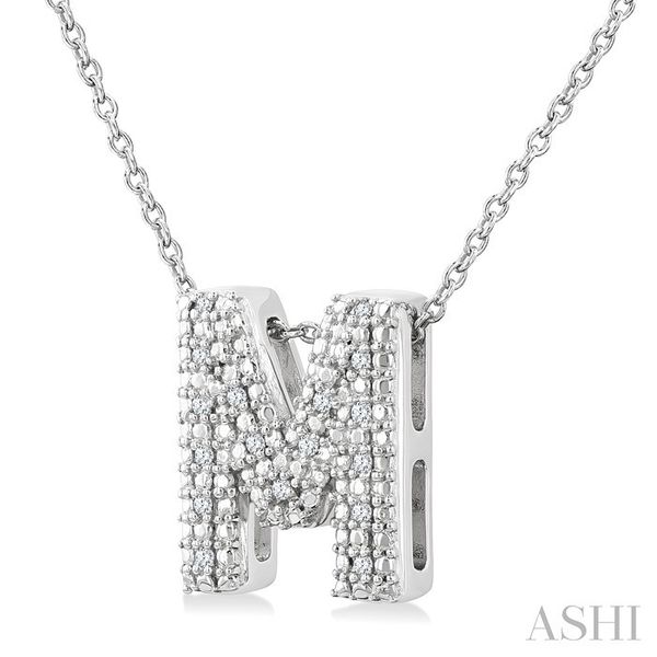 1/20 Ctw Bubble Accent Initial 'M' Round Cut Diamond Fashion Pendant With Chain in Sterling Silver Image 2 Becker's Jewelers Burlington, IA