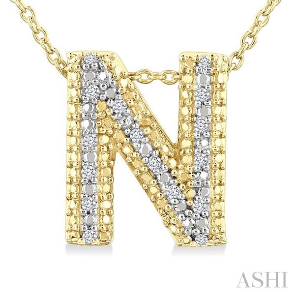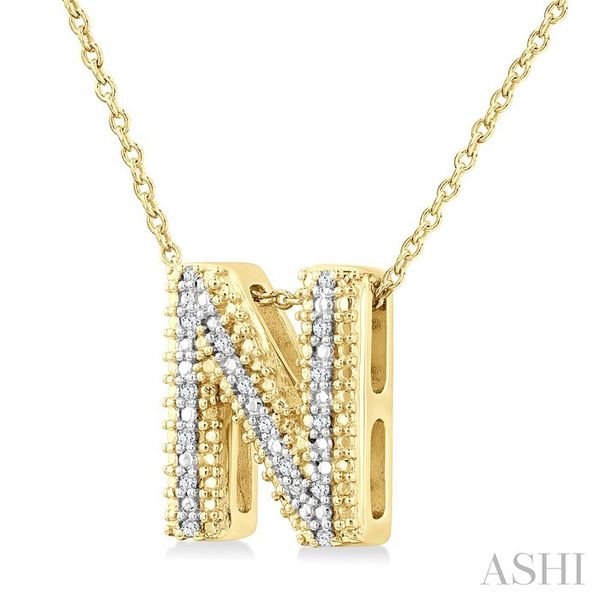 1/20 Ctw Bubble Accent Initial 'N' Round Cut Diamond Fashion Pendant With Chain in Yellow Gold Vermeil Image 2 Becker's Jewelers Burlington, IA
