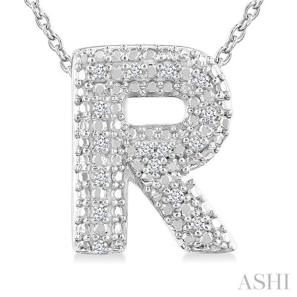 1/20 Ctw Bubble Accent Initial 'R' Round Cut Diamond Fashion Pendant With Chain in Sterling Silver Image 2 Becker's Jewelers Burlington, IA